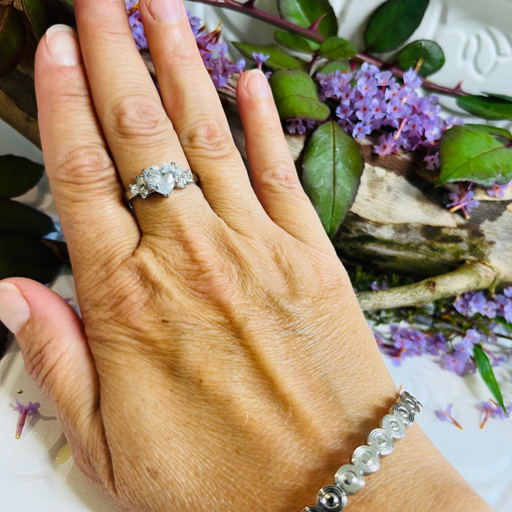 A gorgeous heart shaped cubic zirconia set in a durable stainless steel ring.