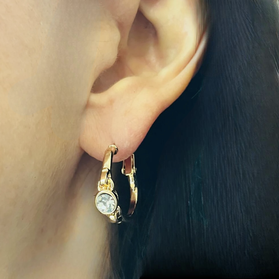 Rose Gold Small Hoop Crystal Earrings