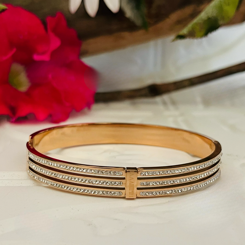 Rose Gold Bangle With Three Rows Of Clear Crystals