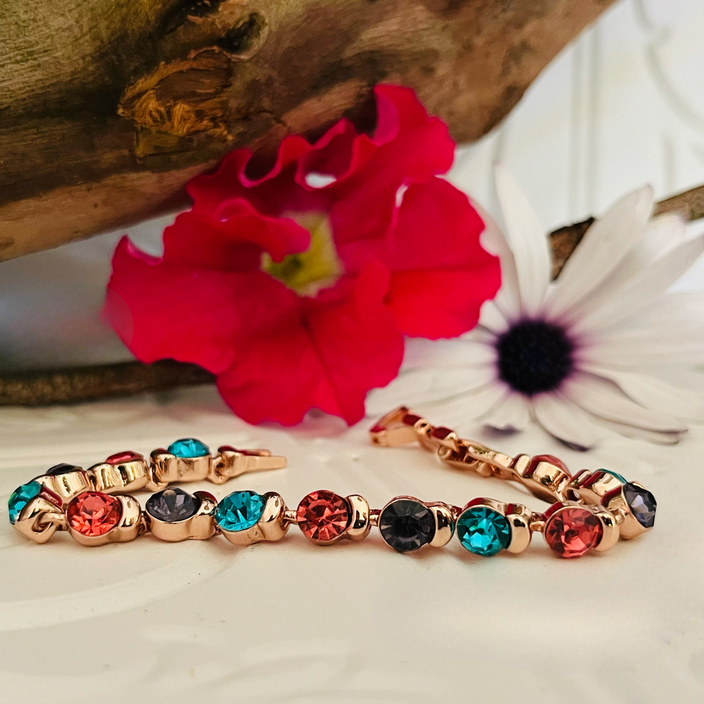 Rose Gold Bracelet With Multi Coloured Stones