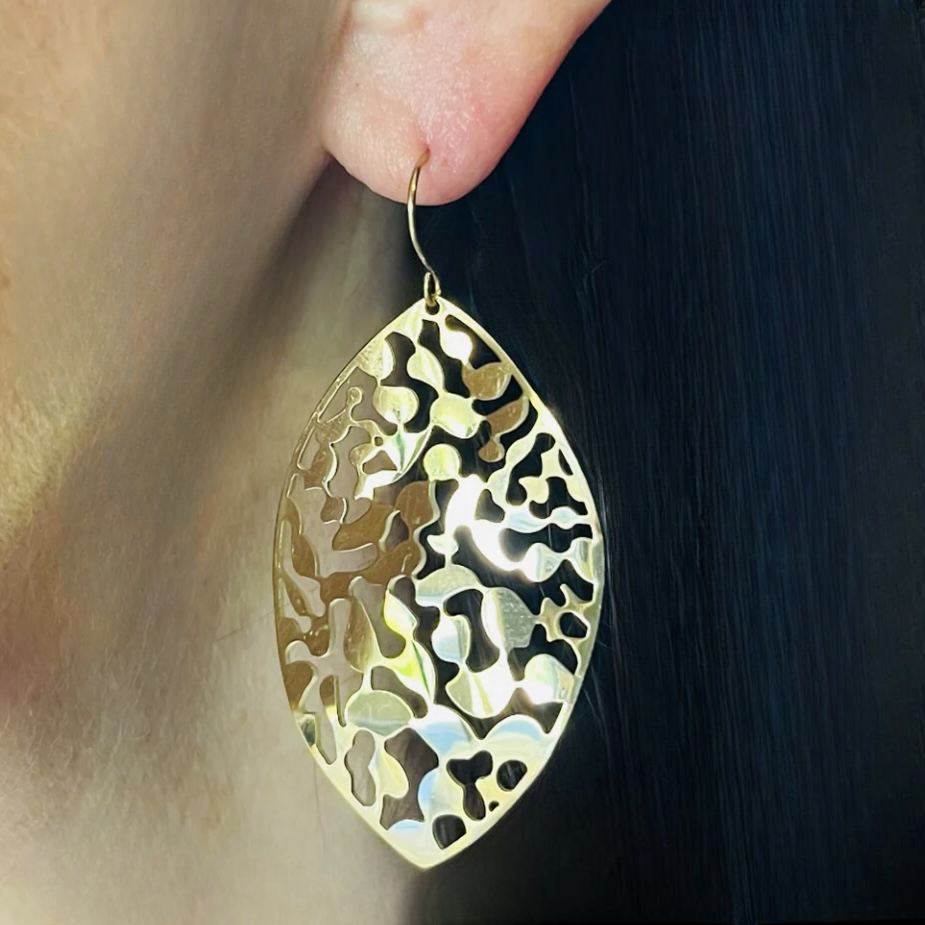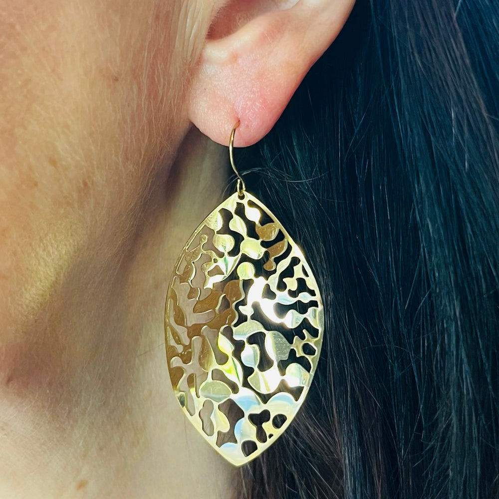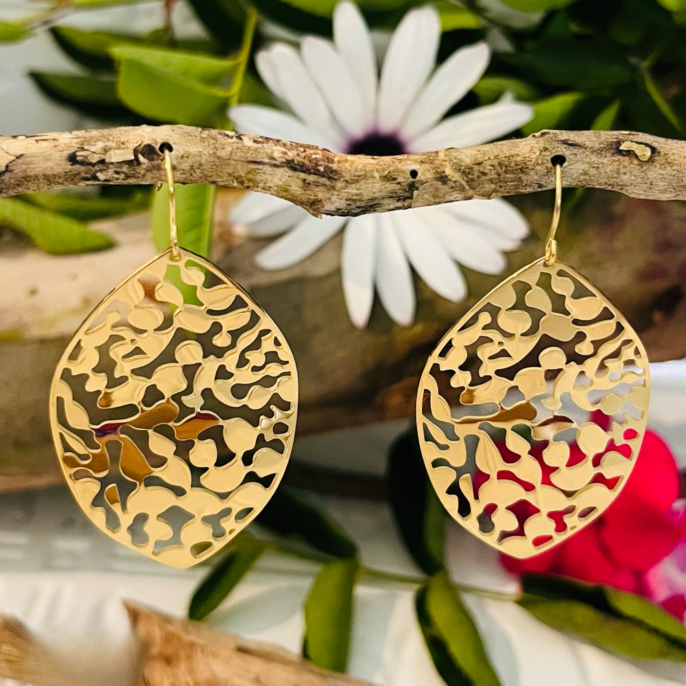 Stainless steel gold larger lightweight hook feature earrings. in a stunning leaf design