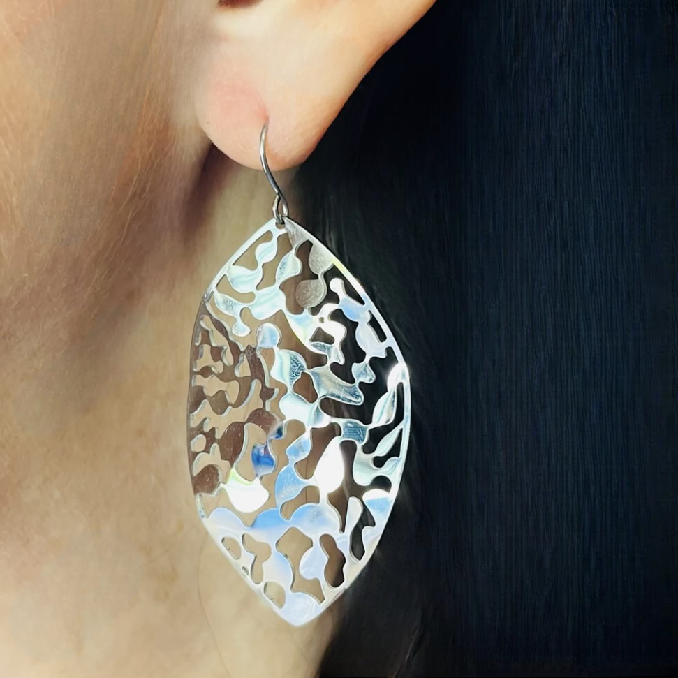 Stainless steel silver larger lightweight hook feature earrings. in a stunning leaf design